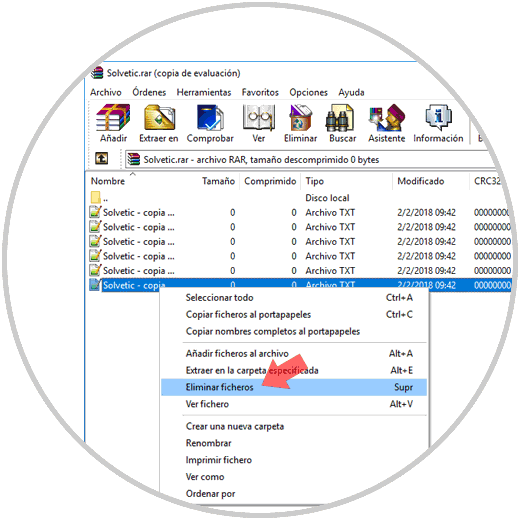 - Seleccionamos la opción "Eliminar ficheros" o pulsamos la tecla "Supr":