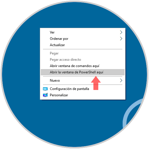 Cundo usamos la tecla Shift + clic derecho podemos ver que por defecto se despliega la opción de Windows PowerShell:
