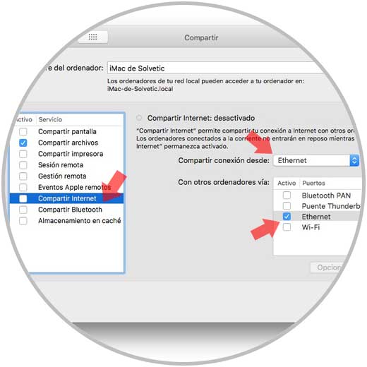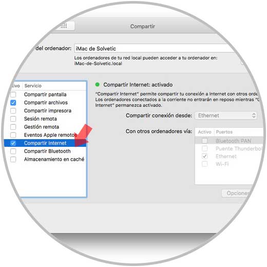 De este modo habremos creado una red privada de área local en el Mac seleccionado, para que los demás dispositivos puedan conectarse a el a través de cable Ethernet.