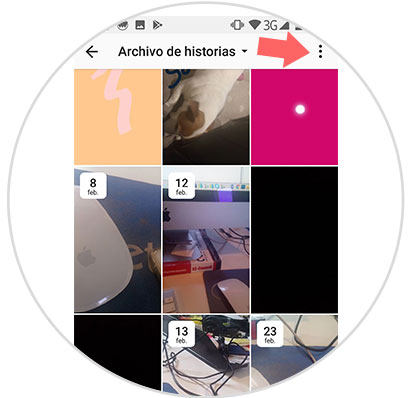 Dentro del archivo de historias pulsa en el icono de tres puntos verticales situado en la esquina superior derecha de la pantalla.