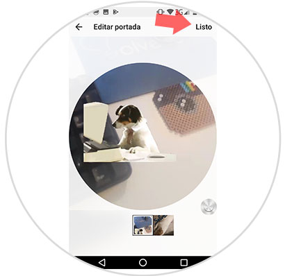Elige la imagen que quieres que sea la portada y céntrala en el círculo. Cuando hayas terminado pulsa en listo.