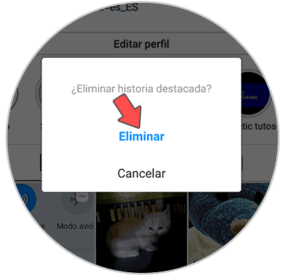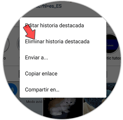 Verás que aparece una ventana emergente en la que debes seleccionar "Eliminar historia destacada"