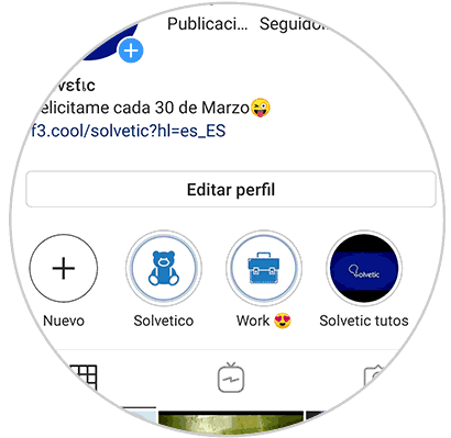 Te dará la posibilidad de que una de las historias sean la portada en “Destacados” Para editar la portada toca sobre ella.
