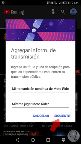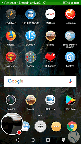 Pulsamos en Siguiente y ahora podremos dar inicio a la grabación o transmisión en vico ya sea de la app seleccionada o de todo lo que hagamos en Android y podremos ver en la parte inferior que será activa la cámara frontal de nuestro móvil: