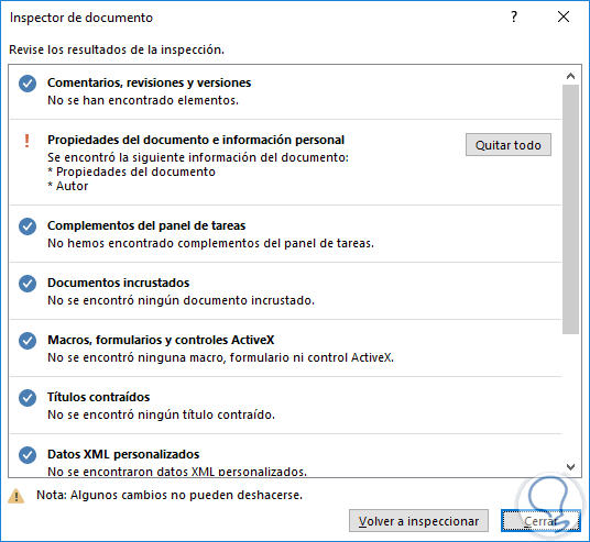 Cuando se crea o edita un documento en Word, parte de la información del usuario se agrega al archivo automáticamente como fecha, nombre, etc. El Inspector de documentos nos ayuda a borrar este tipo de información antes de compartir un documento aumentado así la seguridad y privacidad de este.