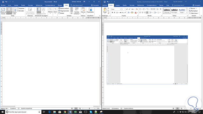 Esta opción es practica cuando deseamos trabajar con dos documentos de forma simultánea en Word 2016 y así podremos anclar cada uno de ellos a un costado diferente.