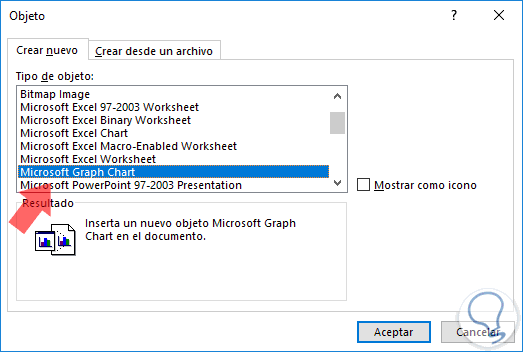 En la ventana desplegada seleccionamos la línea Microsoft Graph Chart: