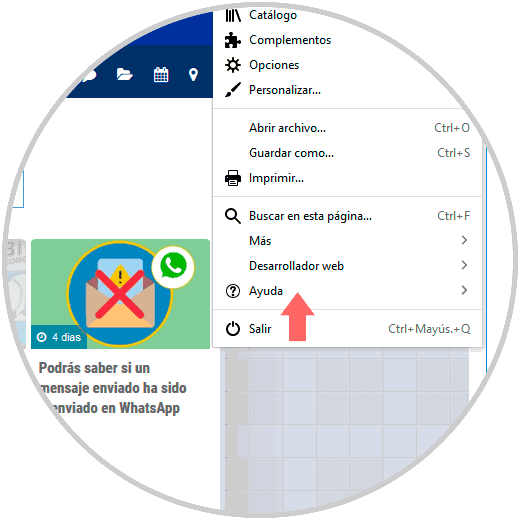 Para usar este método, pulsamos en el menú de Firefox Quantum y seleccionamos la opción “Ayuda”:
