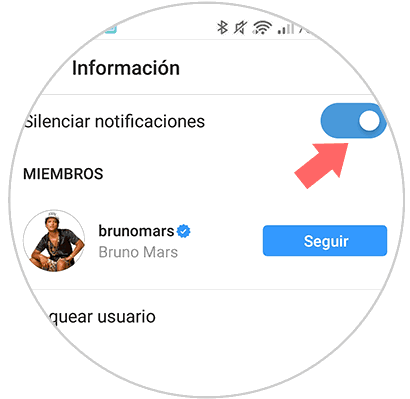 Una vez aquí, veremos que aparece una pestaña en la que pone “Silenciar notificaciones”. Debemos activarla.