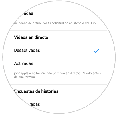 2. Cómo desactivar notificaciones para un usuario de vídeos en Directo Instagram