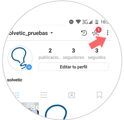 Lo primero que debemos hacer es abrir la aplicación de Instagram y entra nuestro perfil. A continuación entra en el menú de configuración pulsando el icono que se encuentra en la esquina superior derecha de la pantalla representado por tres puntos verticales.