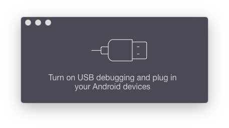 Allí pulsamos en el botón Abrir y luego de esto, la aplicación nos indicara que debemos activar la depuración de USB y conectar el dispositivo Android al equipo: