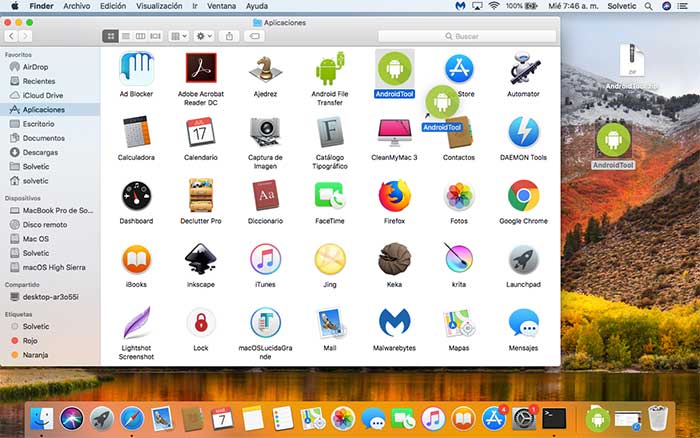 Una vez hayamos descargado el paquete zip de AndroidTool del enlace indicado, vamos a proceder a su extracción y posteriormente vamos a mover la aplicación AndroidTool al directorio Aplicaciones de macOS High Sierra:
