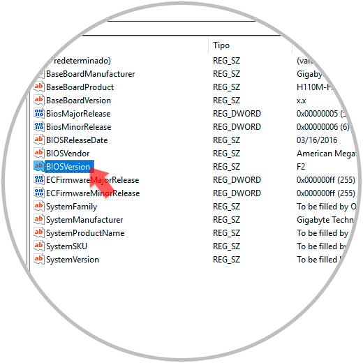 5. Ver versión de BIOS con la información de registros en Windows 10, 8, 7