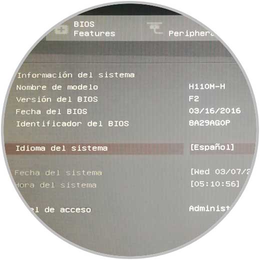 Pulsamos Enter o Aceptar y en la ventana desplegada, ubicaremos la línea “Versión y fecha de BIOS” donde encontraremos los datos requeridos: