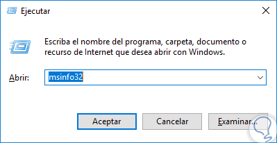 A través de MSINFO, podremos conocer detalles sobre la BIOS usada y para acceder a esta utilidad, usaremos la combinación de teclas siguientes y ejecutamos el comando “msinfo32”: