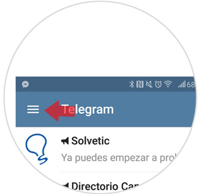 Una vez dentro de Telegram, pulsa el icono de las tres líneas horizontales situado en la esquina superior izquierda de la pantalla.