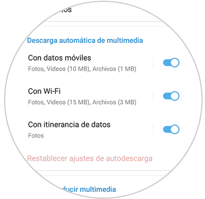 Ahora verás un apartado que pone “Descarga automática multimedia”. Tienes que seleccionar en que circunstancias quieres que se descarguen los archivos.