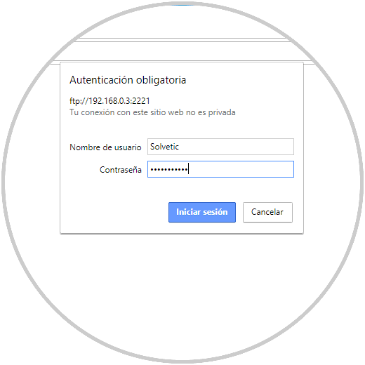 Al usar este método la conexión será automática y no se requerirá de ninguna contraseña lo cual no es seguro. Para hacer la conexión FTP privada y segura, tenemos la posibilidad de definir un nombre de usuario y su respectiva contraseña para las nuevas conexiones a través de FTP.