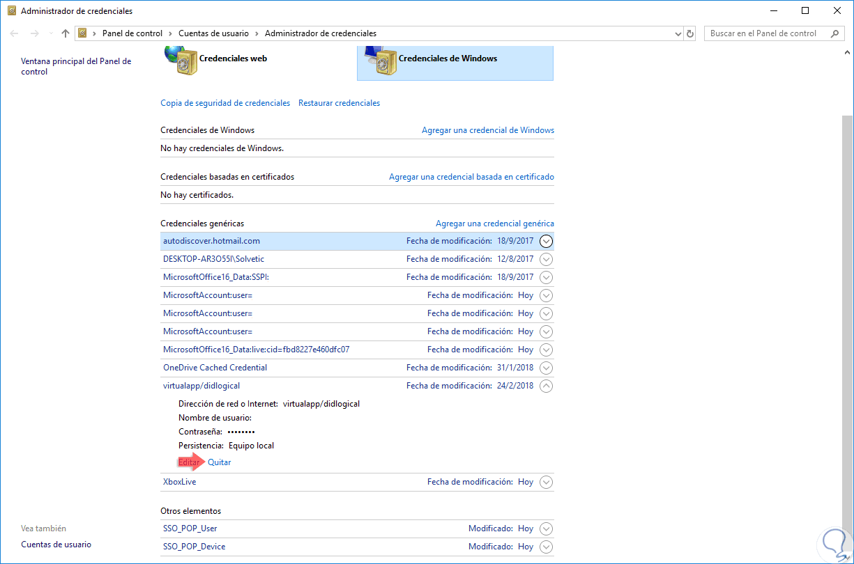 Todas las credenciales que usamos en Windows 10, incluyendo las credenciales de Wi-Fi, son almacenadas en un lugar seguro llamado Administrador de credenciales y desde allí será posible administrarlas y eliminarlas.