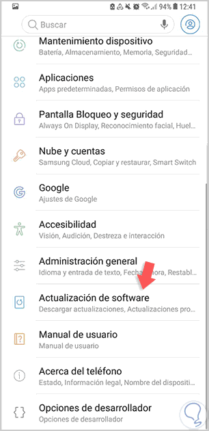 Bajamos en la nueva ventana hasta llegar a la opción de “Actualización de software”.