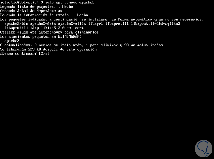 Para eliminar un paquete ejecutamos la siguiente sintaxis: