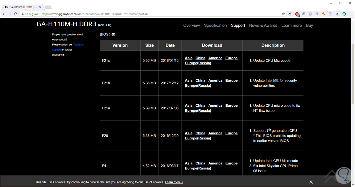 Cada fabricante de tarjetas madre, o boards, dispone en su sitio web oficial de aplicaciones diseñadas para la actualización automática del BIOS por ejemplo, en este caso contamos con una board Gigabyte y en su sitio encontramos lo siguiente: