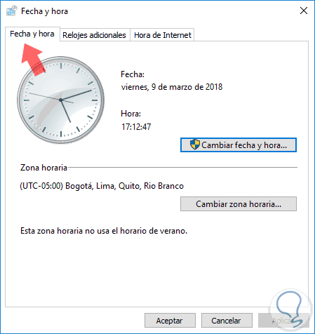 1. Cómo editar el servidor de tiempo de Internet para reparar error reloj de Windows 10