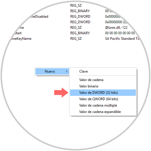 Allí daremos clic derecho sobre algún espacio en blanco y seleccionamos la opción Nuevo / Valor de DWORD (32 bits)