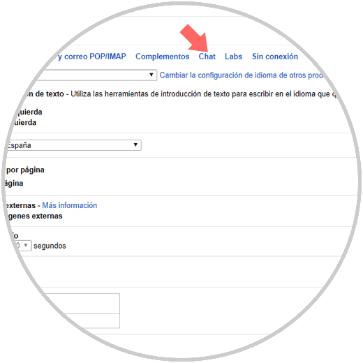 Aparecerás en una nueva ventana, en cuya parte superior verás multitud de pestañas correspondientes con distintos aspectos dentro de esta aplicación. Pulsa en la pestaña “Chat” para continuar.