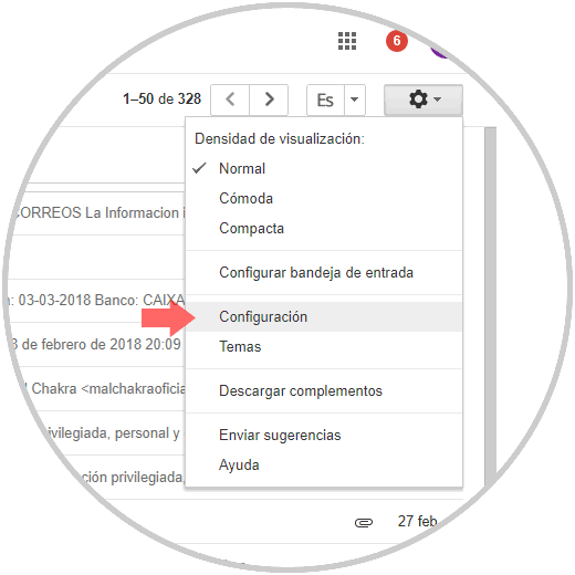 Pulsa aquí y se desplegará una ventana donde tendrás que pulsar la opción “Configuración”