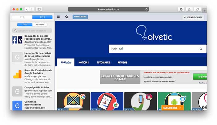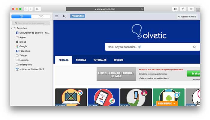 Si tenemos un Mac, es probable que el navegador que utilicemos por defecto sea Safari. Este navegador dispone de dos apartados: Marcadores y favoritos.