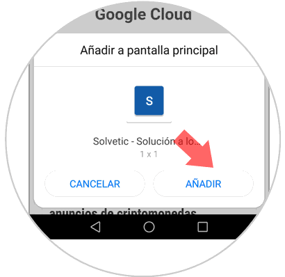 De nuevo aparecerá una nueva ventana en tu escritorio para añadir el icono a tu pantalla principal. Aquí te mostrará una vista previa del icono a través del cual podrás acceder de forma directa a tu página. Pulsa en “Añadir” de nuevo