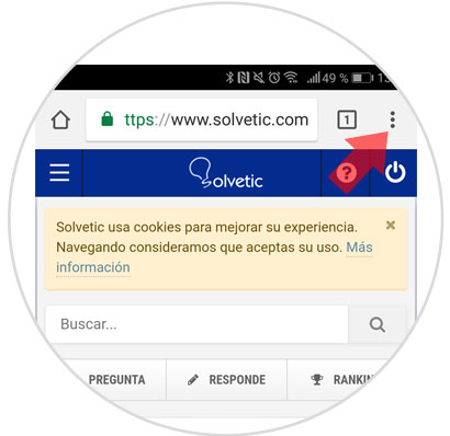 En la barra de direcciones escribe la dirección correspondiente a la página sobre la que queremos crear el acceso directo y cuando te lleve a la página pulsa el icono de los tres puntos verticales situado en la esquina superior derecha de la pantalla.