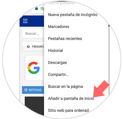Se desplegará una ventana donde aparecerán diferentes opciones. Pulsa sobre la opción “Añadir a pantalla de inicio”