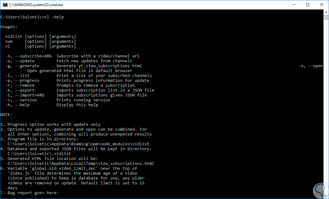 Vidlist es una herramienta de línea de comandos que para su óptimo funcionamiento requiere Node.js, será posible instalarlo a través de un solo comando, y una vez instalado, se puede usar desde el símbolo del sistema.