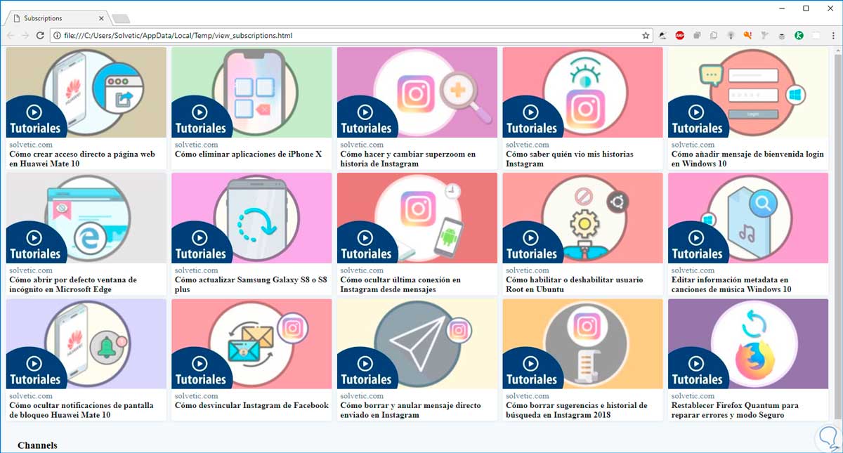 Como vemos, automáticamente hemos quedado inscritos al canal sin necesidad de usar cuenta alguna. Para visualizar todas las actualizaciones de los canales a los cuales estamos suscritos, usaremos este comando, el cual imprimirá todas las miniaturas de los vídeos y la URL en un archivo HTML, este archivo será abierto en el navegador que tengamos por defecto: