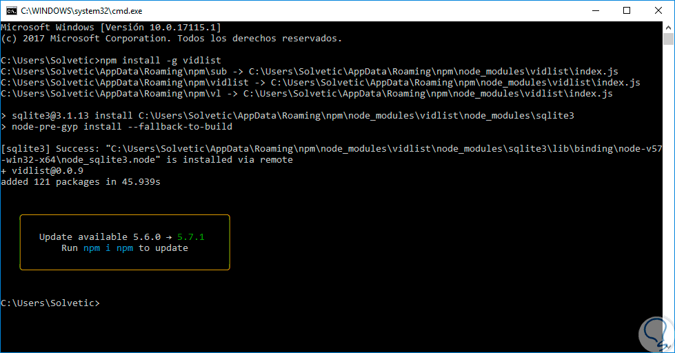 Para iniciar, debemos confirmar que hemos instalado Node.js y a continuación ejecutar lo siguiente para la instalación de vidlist:
