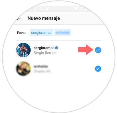 Elige dos o más personas seleccionándolas marcando el círculo azul situado a la derecha del nombre del usuario.