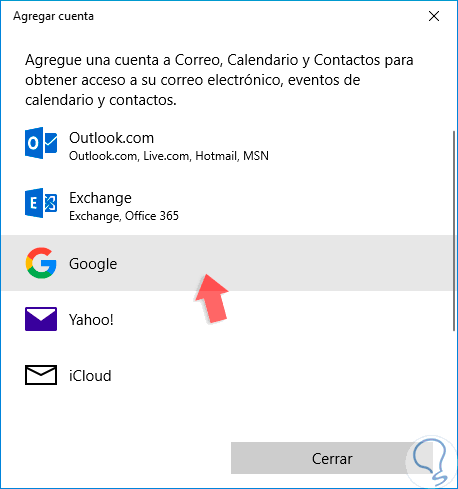 Cuando seleccionemos Google, será desplegado el siguiente asistente:
