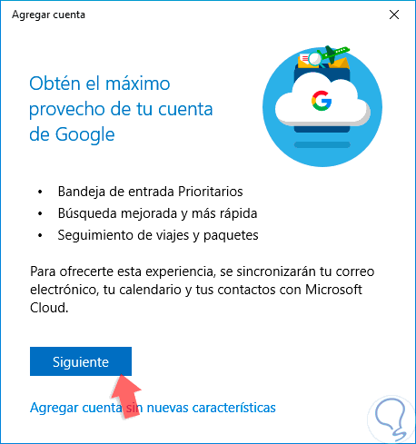 Allí podemos pulsar en Siguiente o en la línea “Agregar cuenta sin nuevas características” y veremos lo siguiente:
