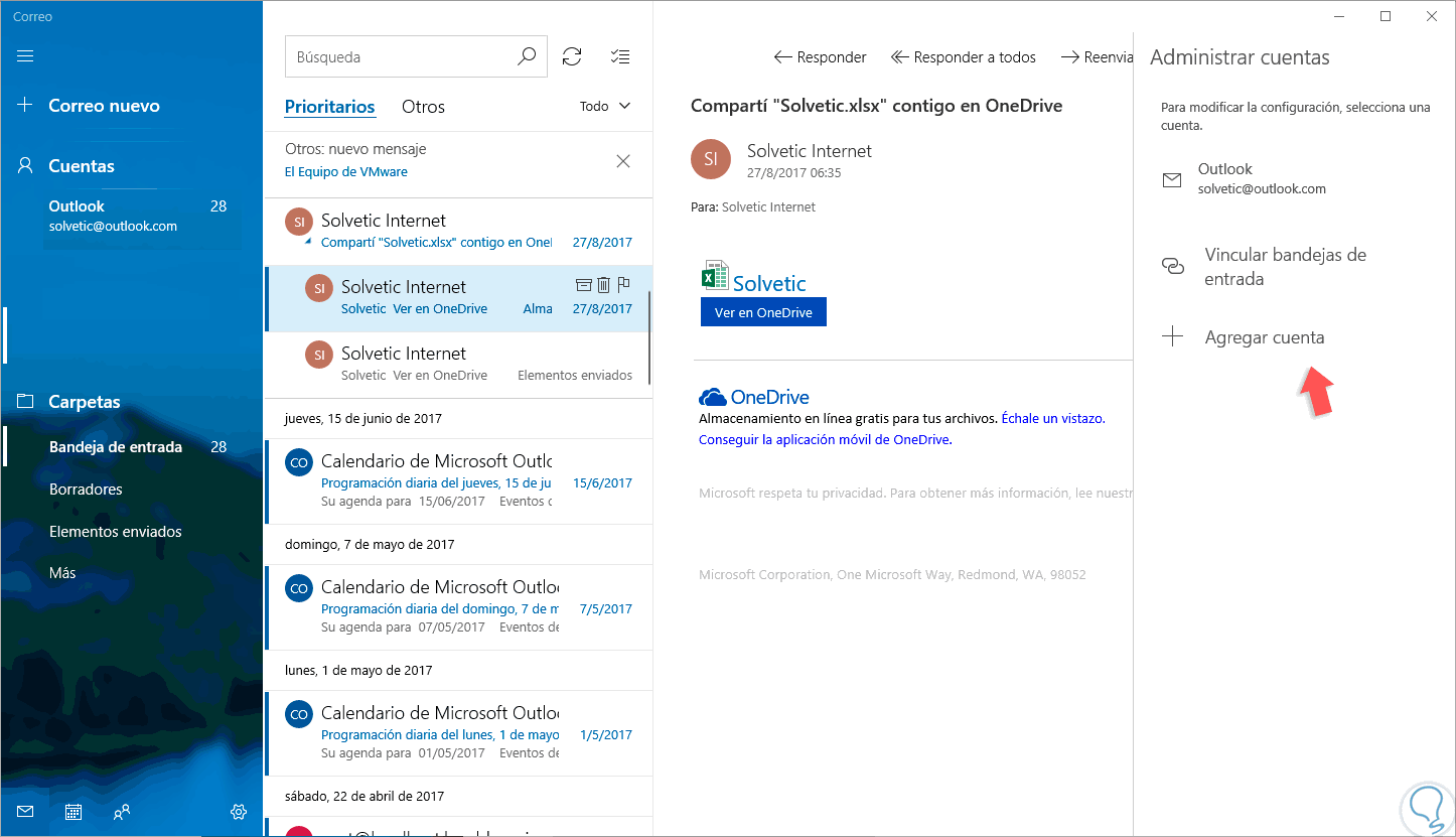 Como vemos, es posible agregar una cuenta de Gmail en la aplicación Correo de Windows 10 y desde allí contar con una gestión centralizada de todos sus componentes sin la necesidad de abrir múltiples ventanas en el sistema.