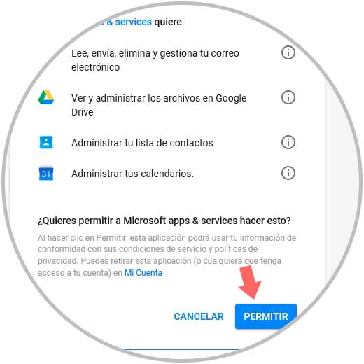 Allí pulsamos en “Permitir” para aprobar los respecticos accesos y veremos que la cuenta se agregó correctamente: