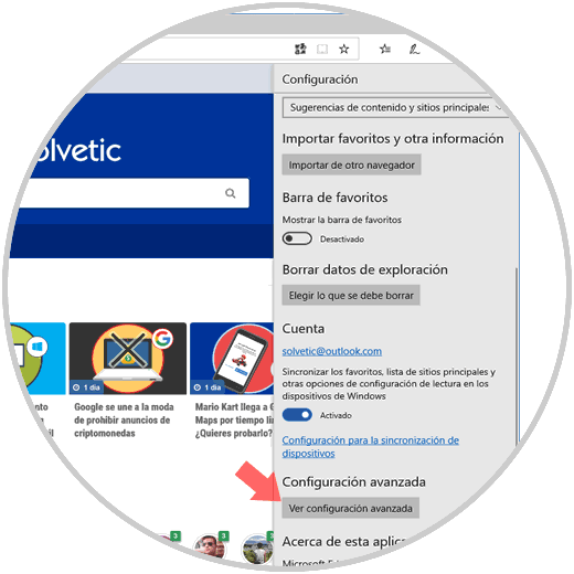 En la barra lateral desplegada seleccionaremos Ver configuración avanzada:
