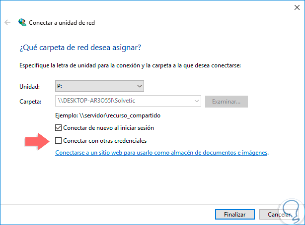 El siguiente paso que dar es asignar la carpeta seleccionada como una unidad en Windows 10.