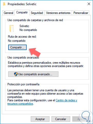 En la ventana desplegada vamos a la pestaña “Compartir” donde veremos lo siguiente:
