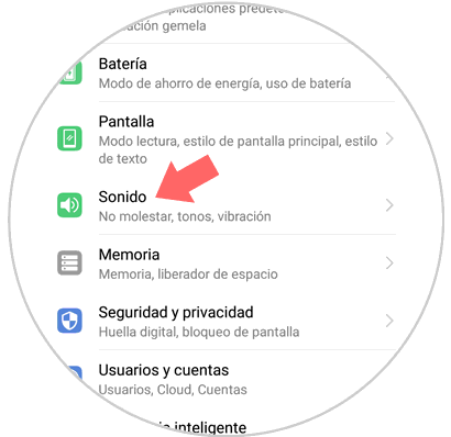 Desliza hasta que encuentres la opción “Sonido” y pulsa aquí.
