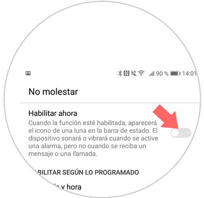 Aquí podrás habilitar la función “No molestar” deslizando la pestaña de “Habilitar ahora” hacia la derecha.