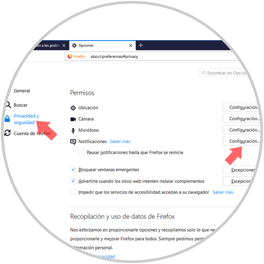En la nueva ventana desplegada, vamos a la sección Privacidad y seguridad y en el panel central nos dirigimos a la sección Permisos: