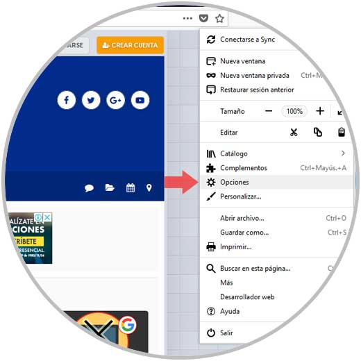 Para lograr esto, iremos a Firefox Quantum, pulsamos en el icono de menú en la parte superior derecha y allí seleccionamos la línea Opciones: